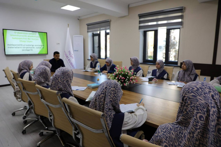 Diniy-ma’rifiy sohaning samaradorligini oshirish, fuqarolarning vijdon erkinligi kafolatlarini ta’minlash, dinlararo va konfessiyalararo totuvlik va bag‘rikenglikni mustahkamlash borasida amalga oshirgan ishlari uchun "Xadichai Kubro" ayol-qizlar o’rta maxsus islom ta’lim muassasasining O‘quv...